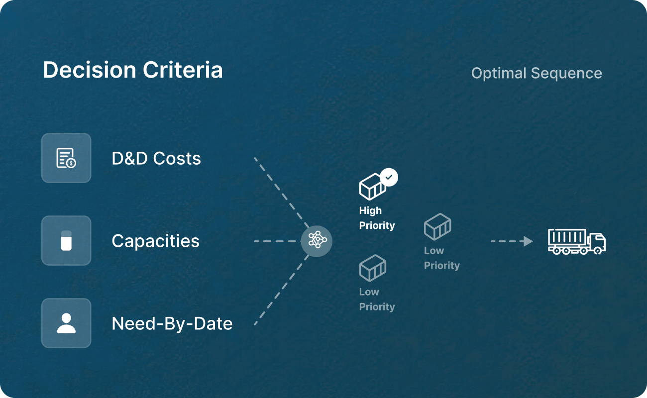 Instead of simply letting the container processing run by itself, Northbound helps to actively control the sequence of containers. Capacities, customer promises and D&D costs are taken into account.